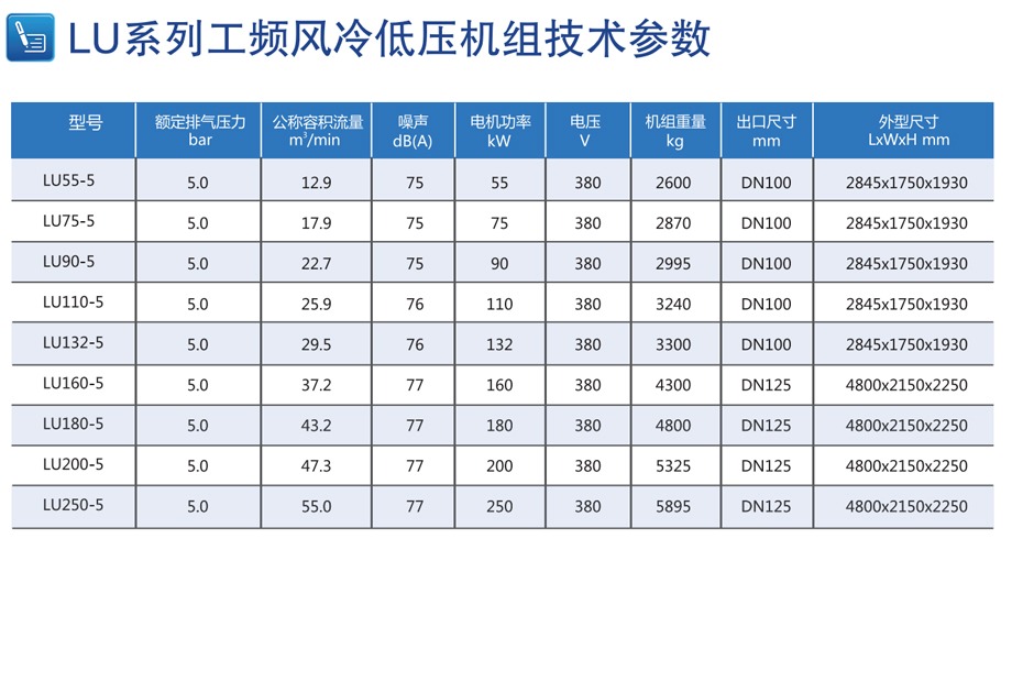 LU(55-250KW)-5 工频低压螺杆空压机