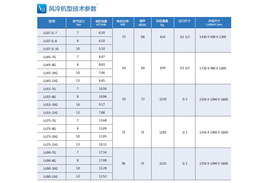 中高端系列:LU G(22kw-355kw)高效齿轮螺杆式压缩机